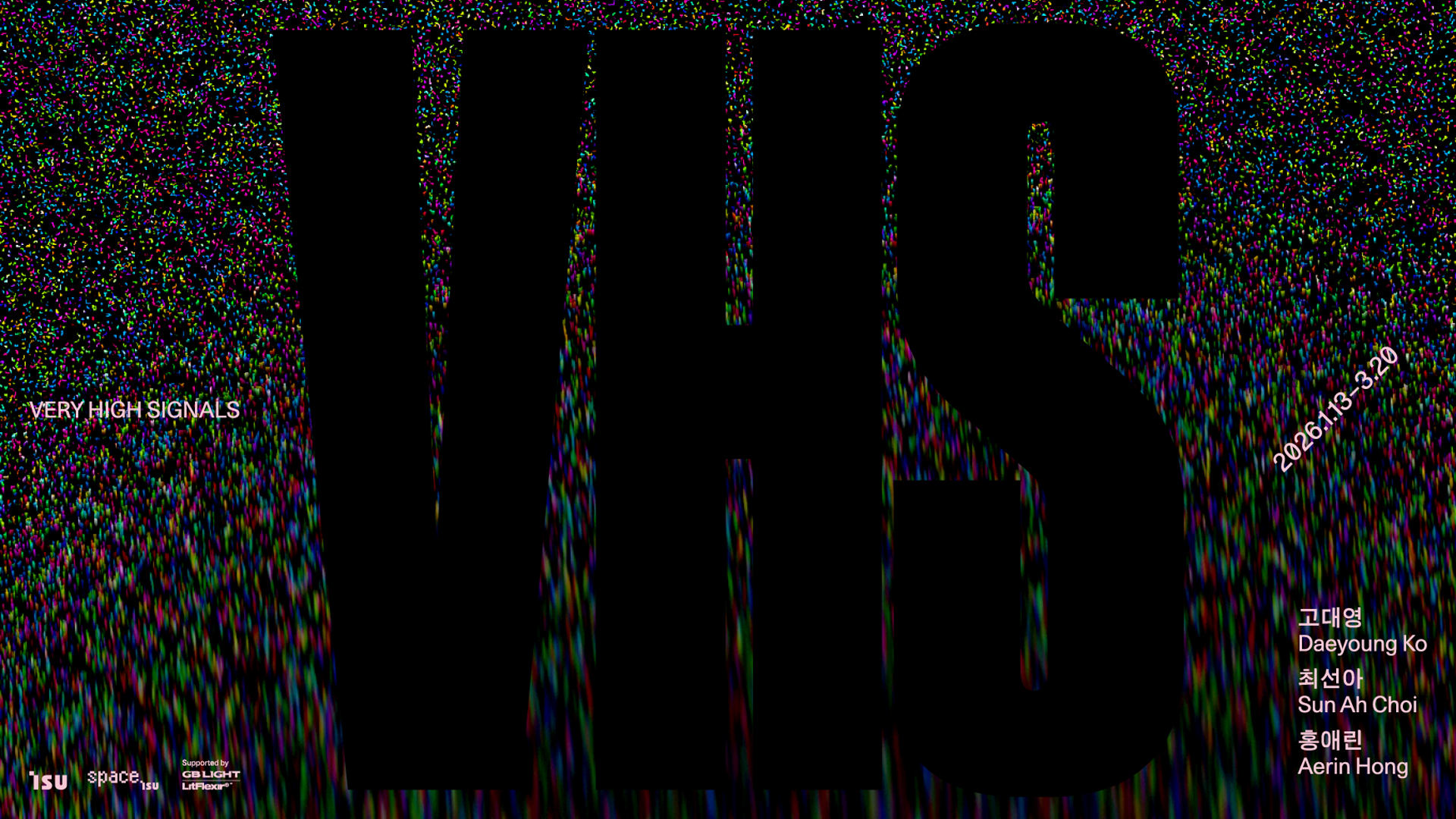 전시의 제목 “VHS”는 “Very High Signals”의 앞 글자를 딴 것이다. 이 전시의 작품들은 희미하게 들리는 고주파처럼 전시 공간 안에서 일종의 신호로 기능한다. 아주 강렬한 신호는 향방을 다 파악하지 못해도 그 진동을 지각할 수 있다. 이번 전시에서 신호처럼 제시되는 작품들은 로비 공간에 함의되는 크고 작은 조건이나 기대에 사소한 균열을 만든다. 작가들은 루틴, 시뮬레이션, 여러 힘의 잔류와 증폭 등의 과정을 거쳐 물질을 입은 이미지와 소리의 형태로 작품을 제시한다. 주로 이 물질과, 이미지, 소리는 자동차와 속도, 컴퓨터 게임, 점토와 포맥스 등 원초적인 에너지, 친숙한 재료, 일상을 요소로 삼지만, 응시할 대상을 조금씩 소거하는 방식으로 날카로운 긴장과 강박적 요청과 신뢰와 편안함 사이를 오간다. 이렇게 만들어진 작품들은 마치 의식하지 않을 땐 들리지 않다가도 일순간 듣게 되면 신경의 스위치를 끄기 어려운 주변의 여러 요소처럼 잔류하고 또 증폭한다.